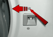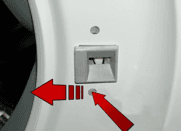 Empuje el pasador en la parte inferior hacia adentro y al mismo tiempo mueva el dispositivo de seguridad de la puerta hacia la izquierda