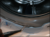 Retire la parte del sello de fuelle correspondiente del gabinete.