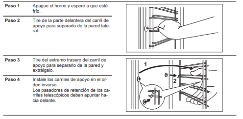 1. Retire los soportes de los estantes y los railes telescópicos.