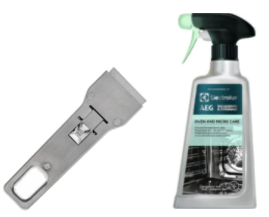 - Puede limpiar fácilmente el cristal del horno y dejarlo como nuevo con un spray limpiador y un raspador de cristal.