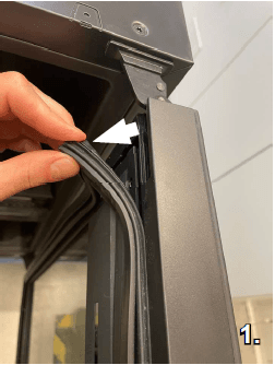 Abre la puerta. ¡Saque la junta con cuidado en la esquina superior, luego vaya hacia el lado inferior!